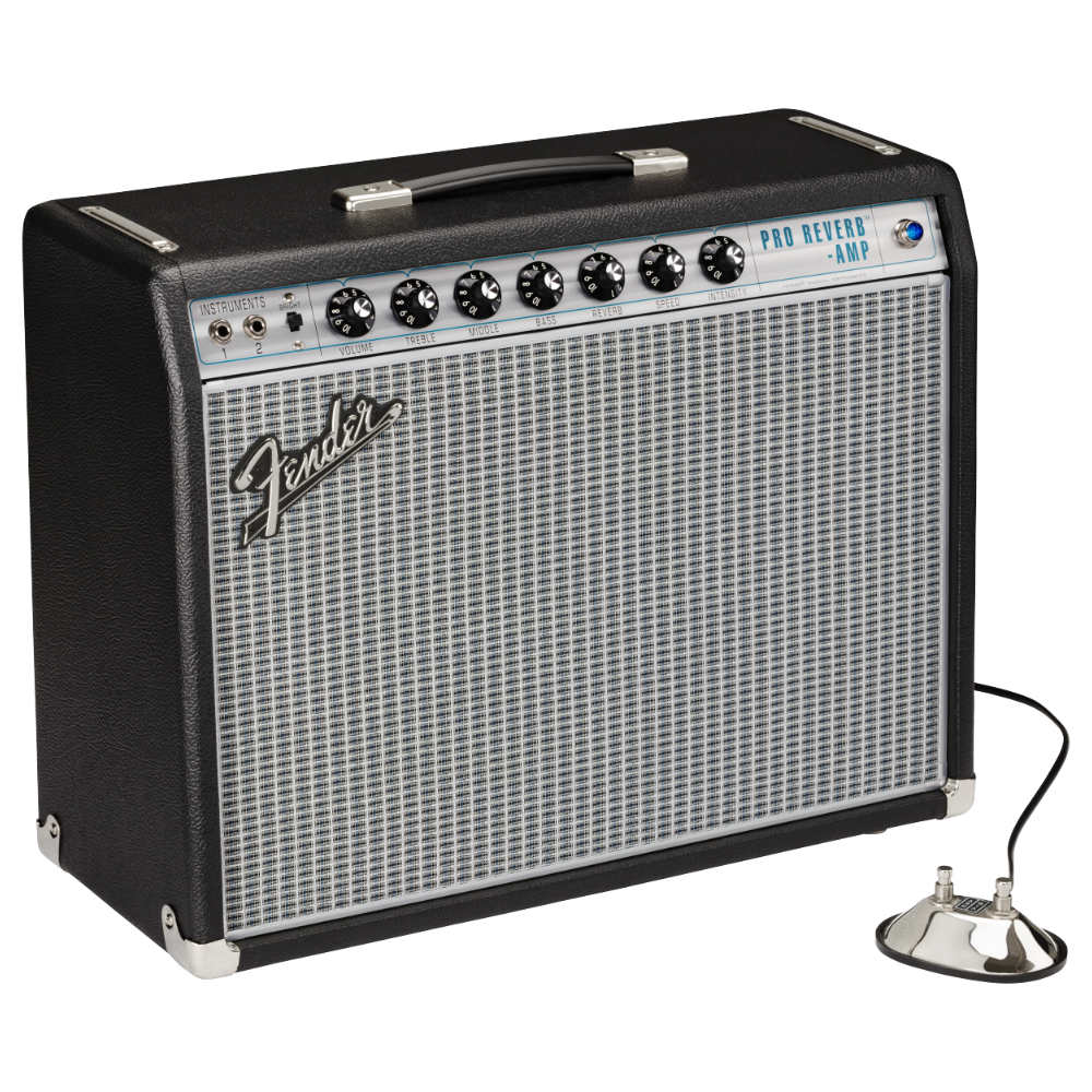 - Unique Features: Modified Pro Reverb circuitry, Lightweight cabinet and Celestion® Neo creamback reduce amp weight to under 35 pounds, reduced negative feedback for more touch sensitivity, genuine Fender tube-driven reverb and grid-bias tremolo, 1968-style silver-panel aluminium trim and silver-turquoise grille cloth, comes with vintage-style two-button foot switch and fitted cover.