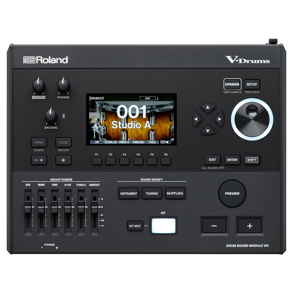 The V51 module shares the same all-new sound engine and DW-sampled audio as the flagship V-Drums 7 Series, offering identical sounds and expression.