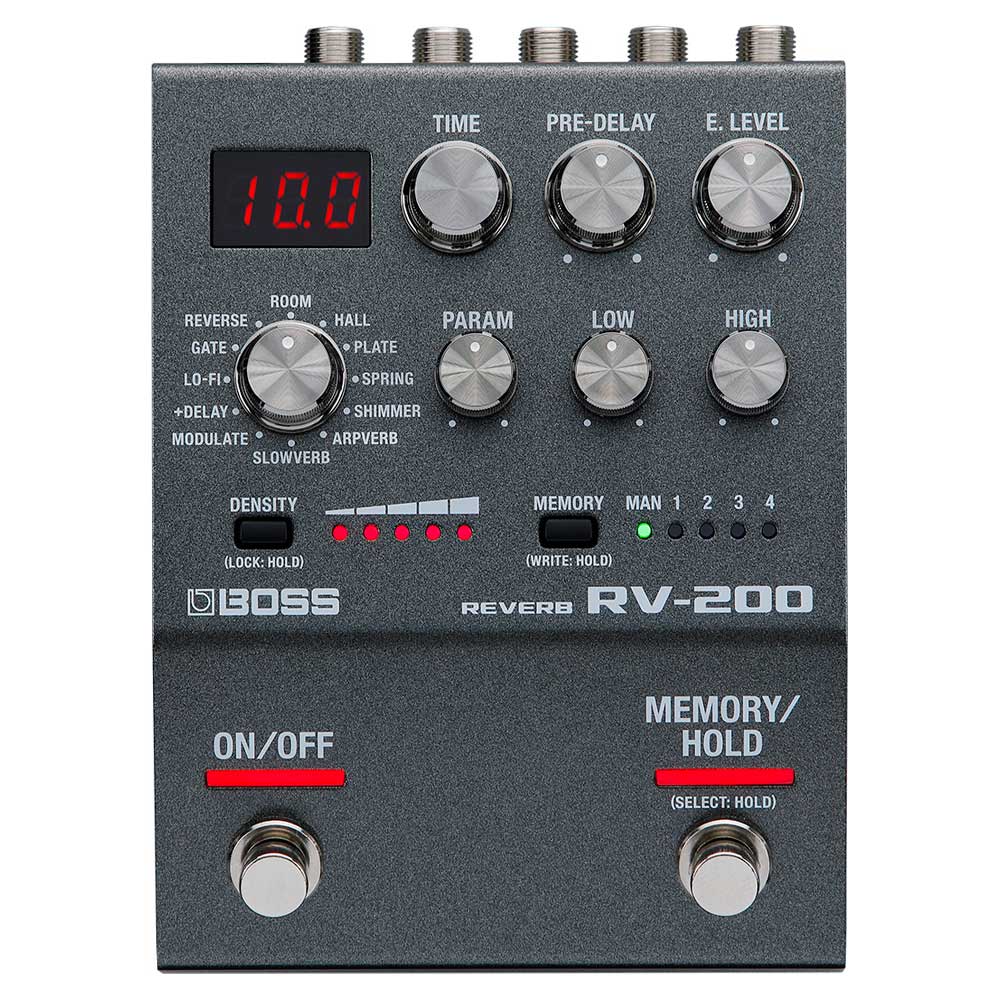 Like all 200 series pedals, the RV-200 offers a powerful yet intuitive panel that lets you realise great sounds with minimal effort. Along with core parameters such as reverb time, effect level, and pre-delay, there are variable high and low filters to perfectly balance the verb for your application. You also have a density control to adjust the weight of the sound, plus a parameter knob with access to multiple sound-shaping tools that are unique to each type.
