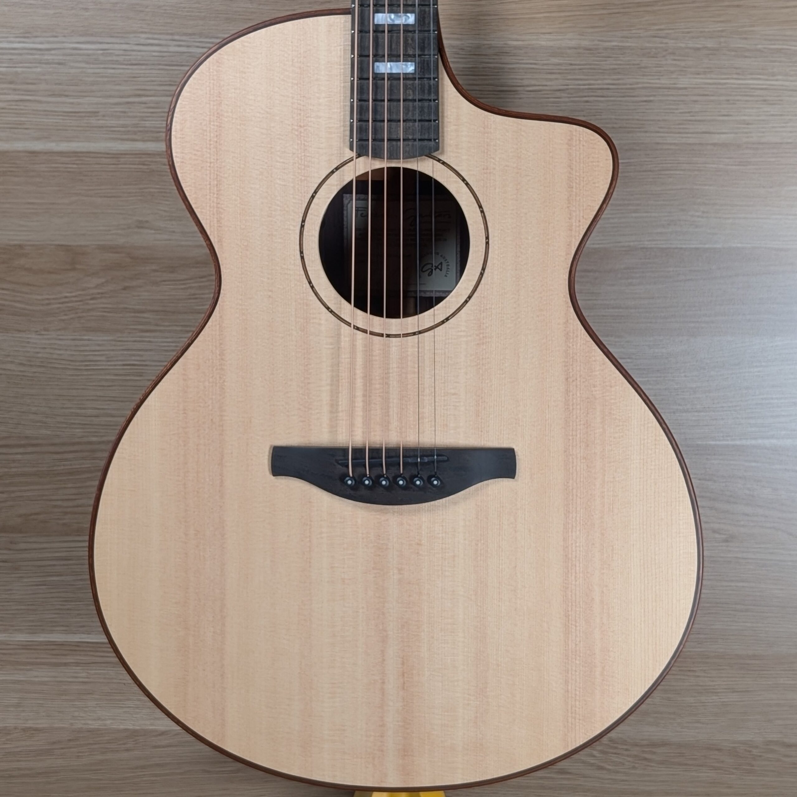 Every VTPR guitar is meticulously hand-voiced, with individually optimized back, sides, and soundboard to ensure maximum resonance, projection, and tonal clarity. A genuine mahogany one-piece neck with volute enhances stability and playability, while the super satin finish provides an ultra-thin, pore-filled surface that allows the wood to breathe naturally.