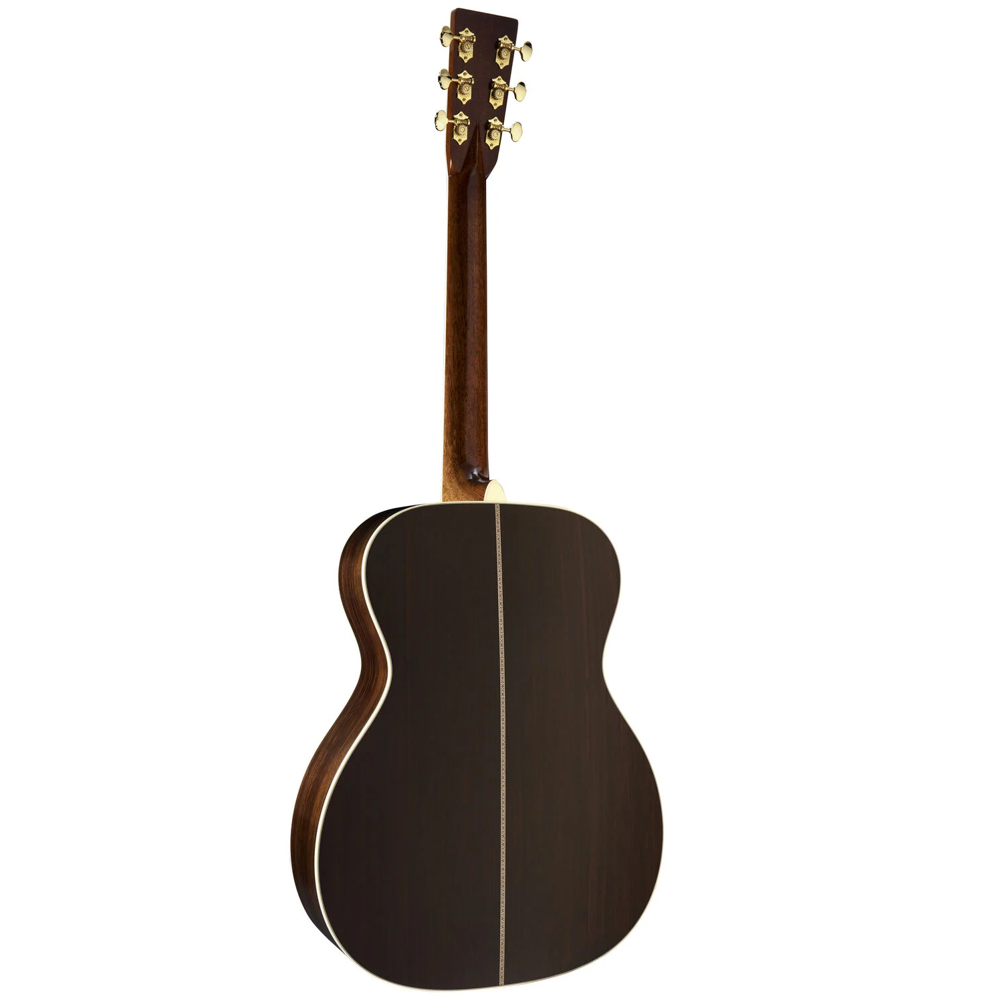 The Martin 000-42 is a trusted blend of tone and craftsmanship, designed for players who value exceptional sound and stunning visual details. Its Auditorium body size offers a balanced tone across all six strings, with deep bass, rich overtones, and clear trebles that suit any playing style. Handcrafted with a solid spruce top and solid East Indian rosewood back and sides, the 000-42 produces a resonant, warm voice. The gloss genuine mahogany neck, featuring a Golden Era (GE) Modified Low Oval profile, high-performance taper, and 24.9″ scale length, provides effortless playability and precision. It features exquisite abalone details, including snowflake inlays on the bound ebony fingerboard, a shimmering rosette, and pearl trim on the top that elegantly wraps around the fingerboard. Complete with antique white binding, an ebony bridge with bone pins, and gold open gear tuners, the 000-42 is a guitar you can trust to unleash the artist within.