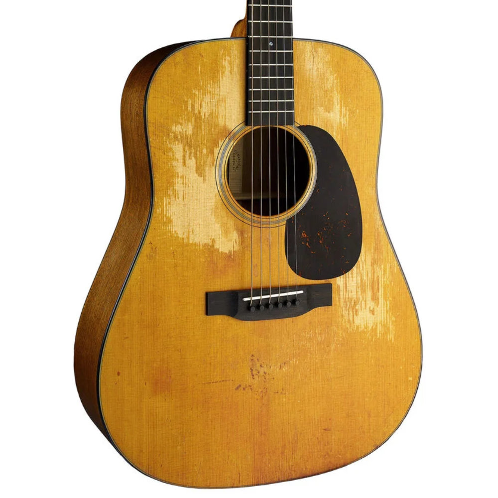 The Martin D-18 StreetLegend® combines trusted, legendary tone with a lived-in look that tells a story before you even play your first note. Its solid spruce top features visual wear inspired by historic guitars in the Martin Museum, giving your brand-new guitar the soulful look of a well-loved heirloom. This vintage-inspired aesthetic is complemented by solid mahogany back and sides, aged open-gear tuners, and a satin-aged pickguard, creating a guitar that feels like it’s been part of your musical journey for decades, carrying the spirit of the past into today. Trusted for its bold, projective tone, this satin-finished Dreadnought delivers strong bass, bright trebles, and a punchy midrange. With a neck featuring a Golden Era (GE) Modified Low Oval profile, high-performance taper, and 25.4″ scale length, the D-18 StreetLegend® is a guitar you can trust to unleash the artist within.