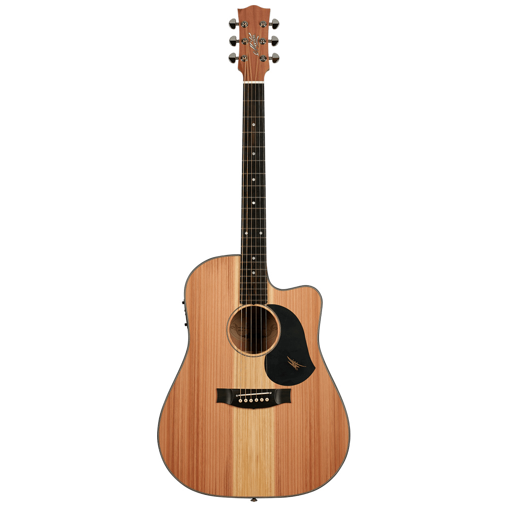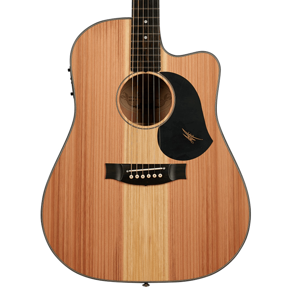 With the introduction of the Redwood Series, Maton has found a new voice in the world of acoustic guitars. There is something truly magical in the tone produced by the combination of a Redwood (Sequoia sempervirens) soundboard and Tasmanian Myrtle (Nothofagus cunninghamii) back and sides. The Redwood is plantation grown and sustainably harvested from the Otway Ranges in Victoria, while the Myrtle comes from Maton’s longstanding supplier in Tasmania, who also provides the timber used to build the Joe Robinson Signature model.