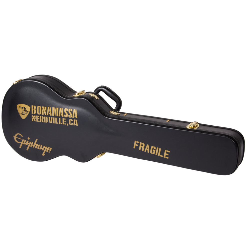 The Joe Bonamassa ’59 Les Paul Custom is powered by a pair of punchy-sounding Epiphone ProBucker Custom pickups that are wired to individual volume and tone controls that use high-quality CTS potentiometers for outstanding reliability and tonal versatility. As is fitting for a Les Paul Custom, the hardware is gold, including a LockTone Tune-O-Matic bridge, the Grover tuners, and the Bigsby B70 vibrato tailpiece. The combination of these elements creates an instrument that is not only visually stunning but also remarkably versatile in its sound. The Epiphone Joe Bonamassa ’59 Les Paul Custom comes with a certificate of authenticity and a hardshell case with “Nerdville” graphics. This limited edition Epiphone Joe Bonamassa ’59 Les Paul Custom is a tribute to a legendary guitarist and an iconic guitar and represents both a lasting investment and excellence in musical instrument craftsmanship